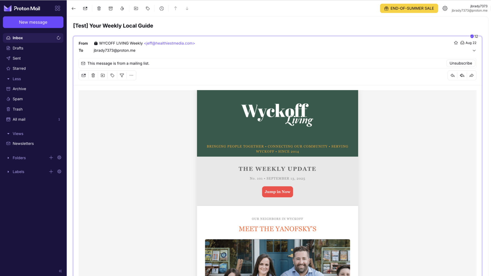 The email is sent from WYCOFF LIVING - recognized in the community since 2016.